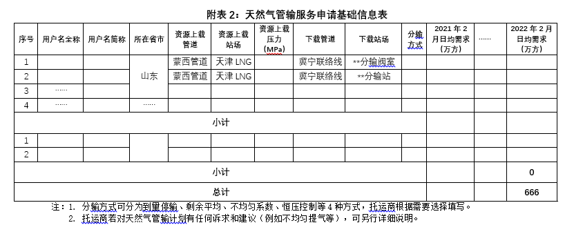 我公司申请油气管网设施服务相关上游资源上载、下游用户分输等具体计划详见附表*。