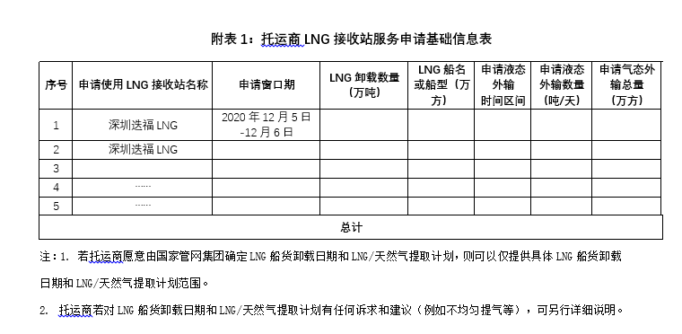 我公司已与**公司签署LNG资源采购意向协议或合同(见附件*),计划从**公司采购LNG,并在国家管网集团**LNG接收站卸载,以液态或气态形式输往周边市场。LNG卸载总量为**万吨,液态形式外输规模**吨/天;气态形式外输规模**万方/天,计划利用**等天然气管道输往****等省市下游市场。