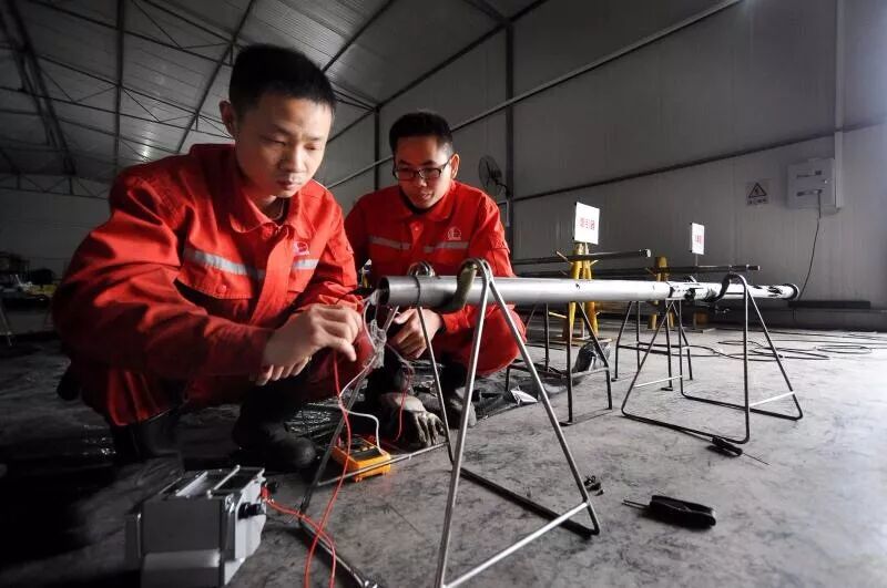 图3:中国石化江汉工程测井中心的技术人员人员正在检测牵引器