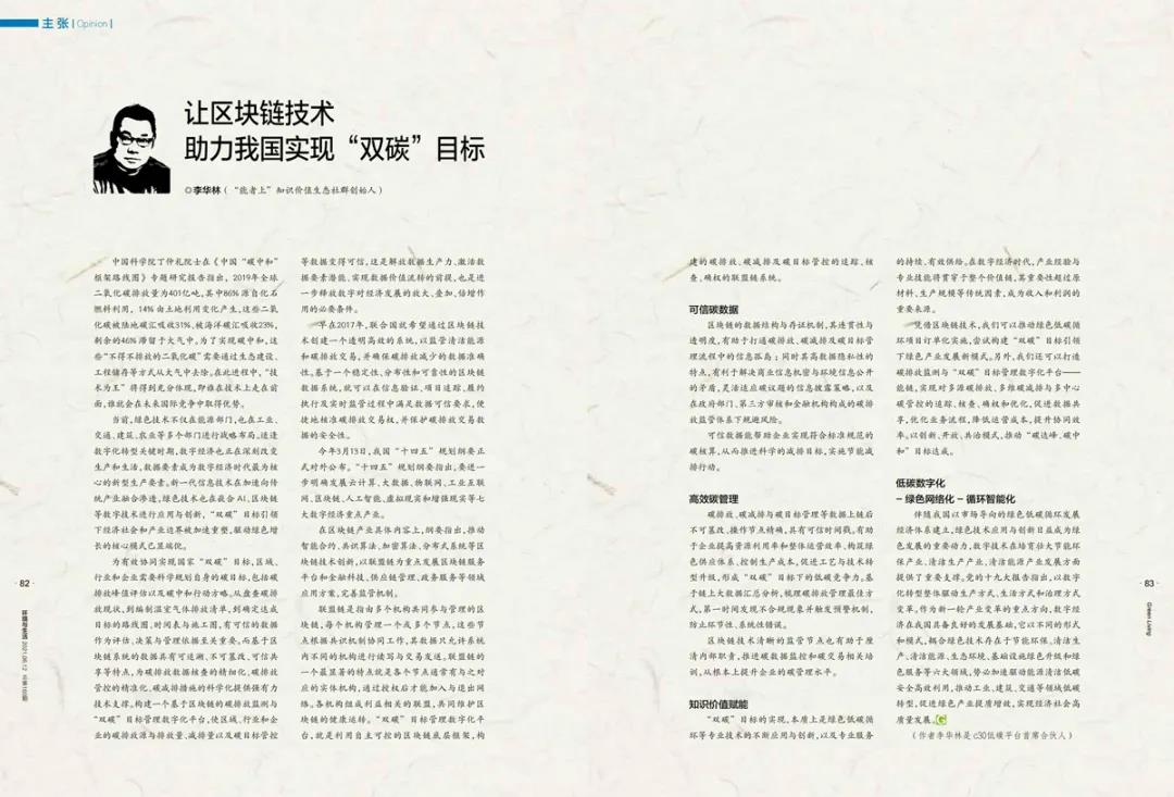 图|发表于《环境与生活》杂志2021年6月号总第160期“主张"栏目的原创文章 文 | 李华林(“能者上”知识价值生态社群创始人) 中国科学院丁仲礼院士在《中国“碳中和”框架路线图》专题研究报告指出,2019年全球二氧化碳排放量为401亿吨,其中86%源自化石燃料利用,14%由土地利用变化产生,这些二氧化碳被陆地碳汇吸收31%、被海洋碳汇吸收23%,剩余的46%滞留于大气中。为了实现碳中和,这些“不得不排放的二氧化碳”需要通过生态建设、工程储存等方式从大气中去除。在此进程中,“技术为王”将得到充分体现,即谁在技术上走在前面,谁就会在未来国际竞争中取得优势。 当前,绿色技术不仅在能源部门,也在工业、交通、建筑、农业等多个部门进行战略布局。适逢数字化转型关键时期,数字经济也正在深刻改变生产和生活,数据要素成为数字经济时代最为核心的新型生产要素。新一代信息技术在加速向传统产业融合渗透,绿色技术也在嵌合AI、区块链等数字技术进行应用与创新,“双碳”目标引领下经济社会和产业边界被加速重塑,驱动绿色增长的核心模式已显端倪。 为有效协同实现国家“双碳”目标,区域、行业和企业需要科学规划自身的碳目标,包括碳排放峰值评估以及碳中和行动方略。从盘查碳排放现状,到编制温室气体排放清单,到确定达成目标的路线图、时间表与施工图,有可信的数据作为评估、决策与管理依据至关重要。而基于区块链系统的数据具有可追溯、不可篡改、可信共享等特点,为碳排放数据核查的精细化、碳排放管控的精准化、碳减排措施的科学化提供强有力技术支撑。构建一个基于区块链的碳排放监测与“双碳”目标管理数字化平台,使区域、行业和企业的碳排放源与排放量、减排量以及碳目标管控等数据变得可信,这是解放数据生产力、激活数据要素潜能、实现数据价值流转的前提,也是进一步释放数字对经济发展的放大、叠加、倍增作用的必要条件。 早在2017年,联合国就希望通过区块链技术创建一个透明高效的系统,以监管清洁能源和碳排放交易,并确保碳排放减少的数据准确性。基于一个稳定性、分布性和可靠性的区块链数据系统,就可以在信息验证、项目追踪、履约执行及实时监管过程中满足数据可信要求,便捷地核准碳排放交易权,并保护碳排放交易数据的安全性。 今年3月13日,我国“十四五”规划纲要正式对外公布。“十四五”规划纲要指出,要进一步明确发展云计算、大数据、物联网、工业互联网、区块链、人工智能、虚拟现实和增强现实等七大数字经济重点产业。 在区块链产业具体内容上,纲要指出,推动智能合约、共识算法、加密算法、分布式系统等区块链技术创新,以联盟链为重点发展区块链服务平台和金融科技、供应链管理、政务服务等领域应用方案,完善监管机制。 联盟链是指由多个机构共同参与管理的区块链,每个机构管理一个或多个节点,这些节点根据共识机制协同工作,其数据只允许系统内不同的机构进行读写与交易发送。联盟链的一个最显著的特点就是各个节点通常有与之对应的实体机构,通过授权后才能加入与退出网络。各机构组成利益相关的联盟,共同维护区块链的健康运转。“双碳”目标管理数字化平台,就是利用自主可控的区块链底层框架,构建的碳排放、碳减排及碳目标管控的追踪、核查、确权的联盟链系统。 可信碳数据 区块链的数据结构与存证机制,其连贯性与透明度,有助于打通碳排放、碳减排及碳目标管理流程中的信息孤岛;同时其高数据隐私性的特点,有利于解决商业信息机密与环境信息公开的矛盾,灵活适应碳议题的信息披露策略,以及在政府部门、第三方审核和金融机构构成的碳排放监管体系下规避风险。 可信数据能帮助企业实现符合标准规范的碳核算,从而推进科学的减排目标,实施节能减排行动。 高效碳管理 碳排放、碳减排与碳目标管理等数据上链后不可篡改、操作节点精确,具有可信时间戳。有助于企业提高资源利用率和整体运营效率、构筑绿色供应体系、控制生产成本,促进工艺与技术转型升级,形成“双碳”目标下的低碳竞争力。基于链上大数据汇总分析,梳理碳排放管理最佳方式,第一时间发现不合规现象并触发预警机制,防止环节性、系统性错误。 区块链技术清晰的监管节点也有助于厘清内部职责,推进碳数据监控和碳交易相关培训,从根本上提升企业的碳管理水平。 知识价值赋能 “双碳”目标的实现,本质上是绿色低碳循环等专业技术的不断应用与创新,以及专业服务的持续、有效供给。在数字经济时代,产业经验与专业技能将贯穿于整个价值链,其重要性超过原材料、生产规模等传统因素,成为收入和利润的重要来源。 凭借区块链技术,我们可以推动绿色低碳循环项目订单化实施,尝试构建“双碳”目标引领下绿色产业发展新模式。另外,我们还可以打造碳排放监测与“双碳”目标管理数字化平台——能链,实现对多源碳排放、多维碳减排与多中心碳管控的追踪、核查、确权和优化,促进数据共享,优化业务流程,降低运营成本,提升协同效率。以创新、开放、共治模式,推动“碳达峰、碳中和”目标达成。 低碳数字化-绿色网络化-循环智能化 伴随我国以市场导向的绿色低碳循环发展经济体系建立,绿色技术应用与创新日益成为绿色发展的