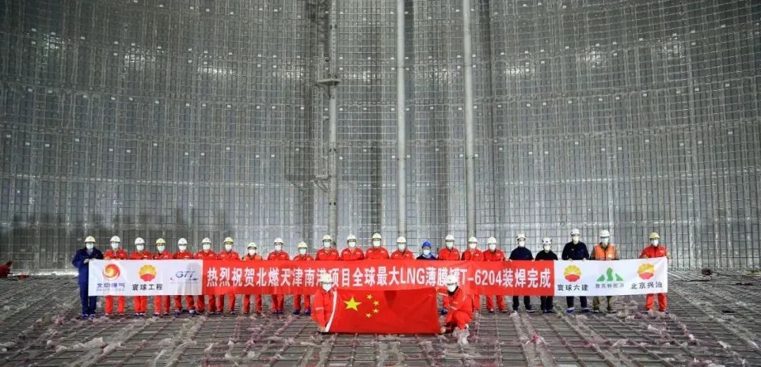 11月22日,随着T-6024薄膜罐的波纹板焊接完成,由寰球公司总承包建设的北京燃气天津南港LNG应急储备项目一期2台薄膜罐完工。这两台薄膜罐罐容为22万立方米,是国内首次建设、世界陆上最大的薄膜罐,标志着京津冀LNG“超级工程”一期进入投产倒计时。